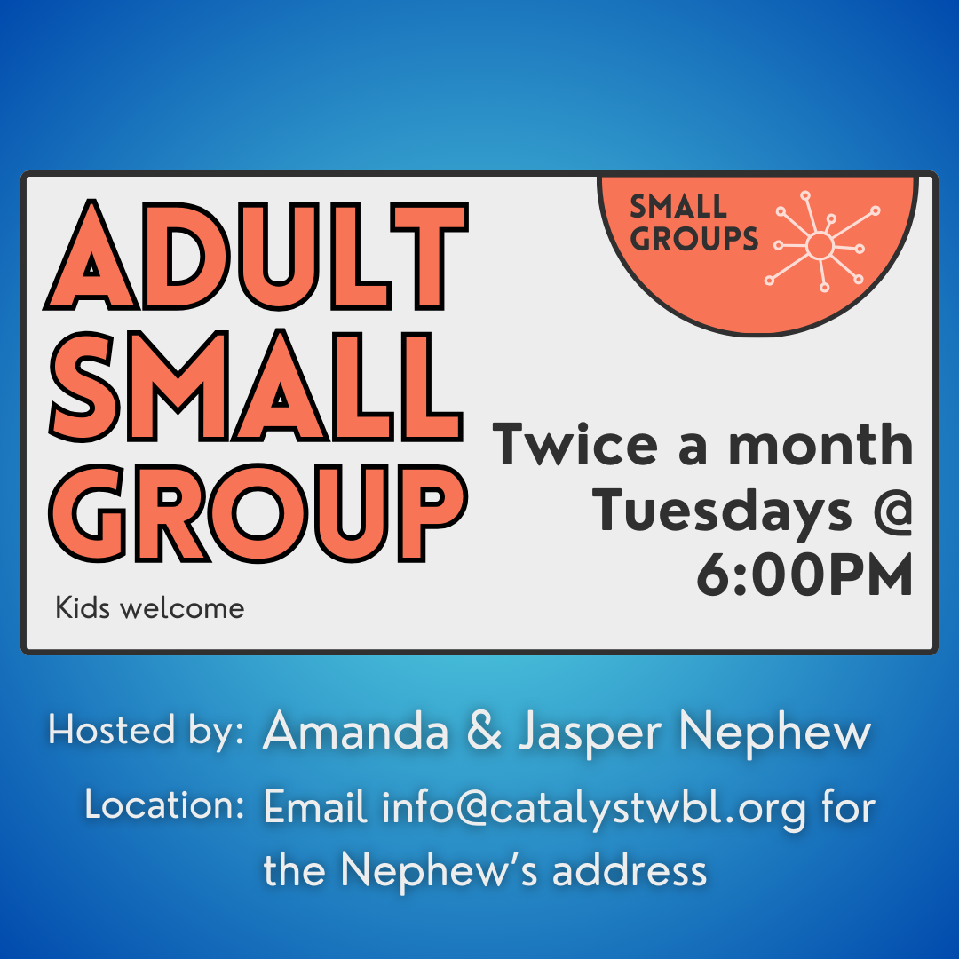 Email cindyjones@catalystwbl.org for more information or with any questions about our Small Group options.